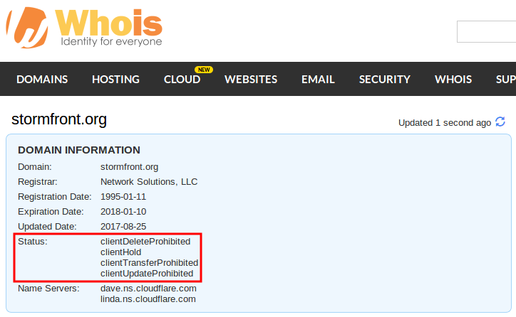 "Stormfront just got their domain stolen. And lol, they were paying Network Solutions an absurd amount of money to not fuck them and they still got fucked.